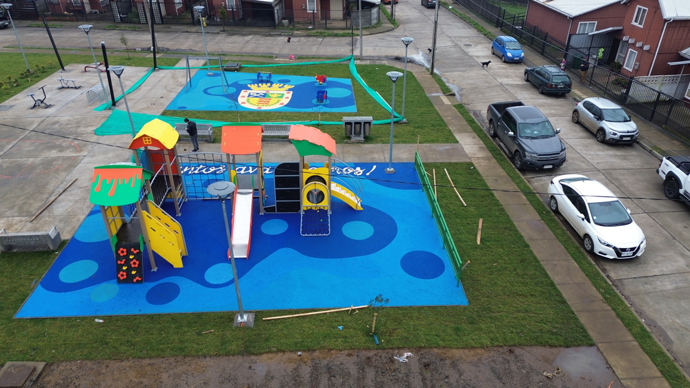 Instalación de mobiliario urbano, juegos de plaza y juegos modulares en Condominio Costanera.